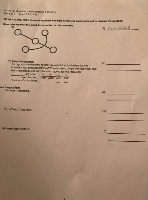 Solved Mgf1107 Liberal Arts Mathematics Test 6 14 1 14 4 Chegg Com